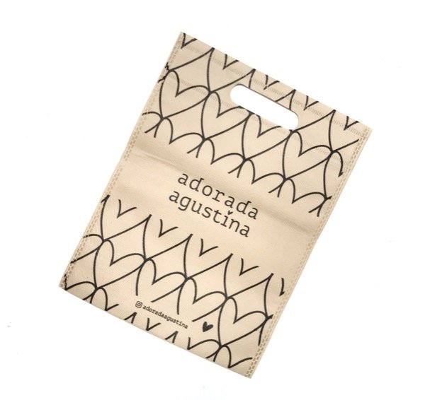 100 bolsas de friselina de 22x30 manija riñón con estampa de logo a 1 color (tamaño A4) en una sola cara